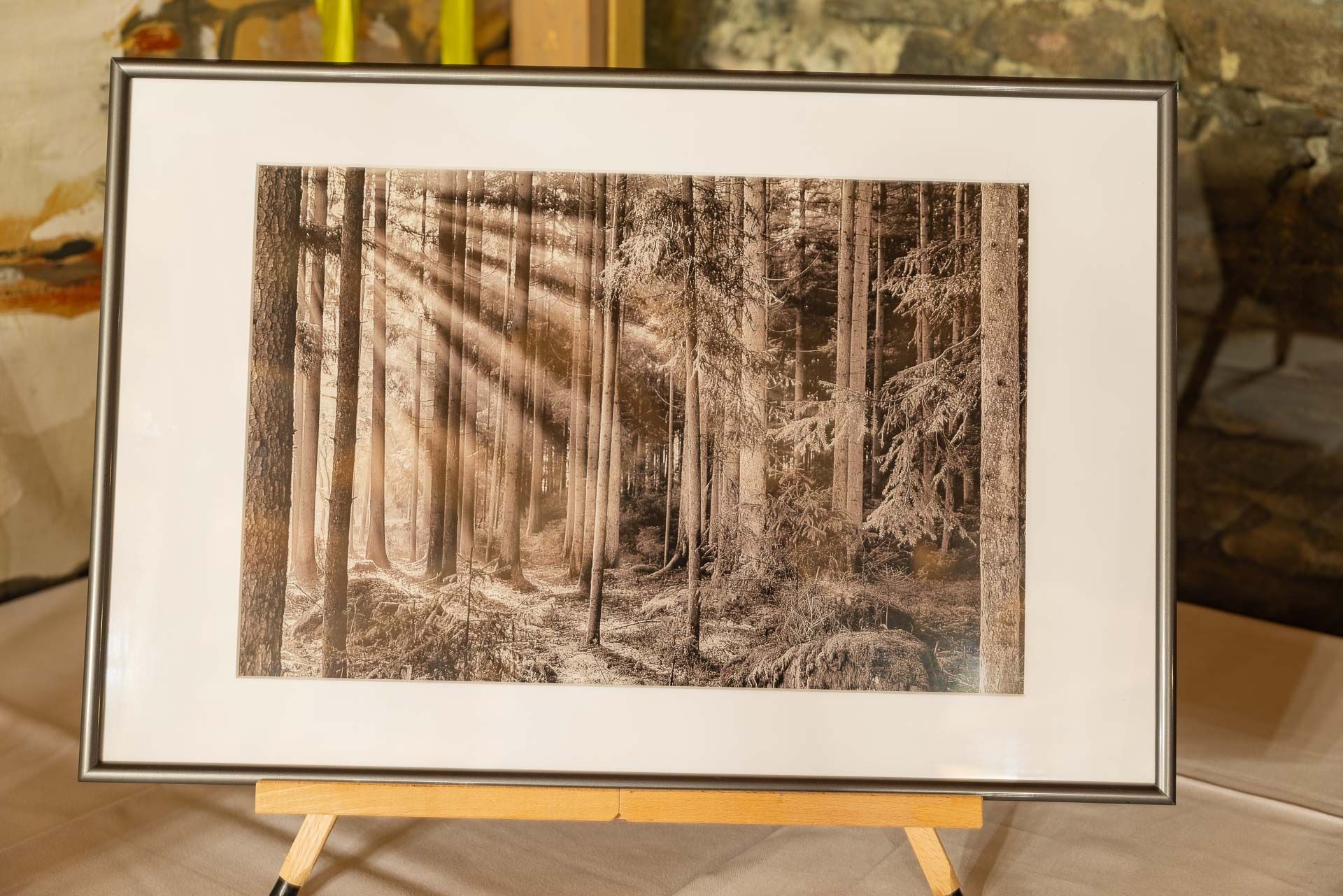 Zur Kunstausstellung präsentiere ich schwarz-weiß Fotografien zum Thema Holz, Baum sowie Baumlandschaften im Bayerischen Wald. Fünf dieser Fotografien präsentiere ich auf Alu im Format 75 x 50 cm. Die übrigen fünfzehn Fotografien werden im Format 45x30 cm mit Passepartout gerahmt präsentiert. Als Besonderheit stehen sämtliche Fotografien auf Feld- bzw. Tischstaffeleien.