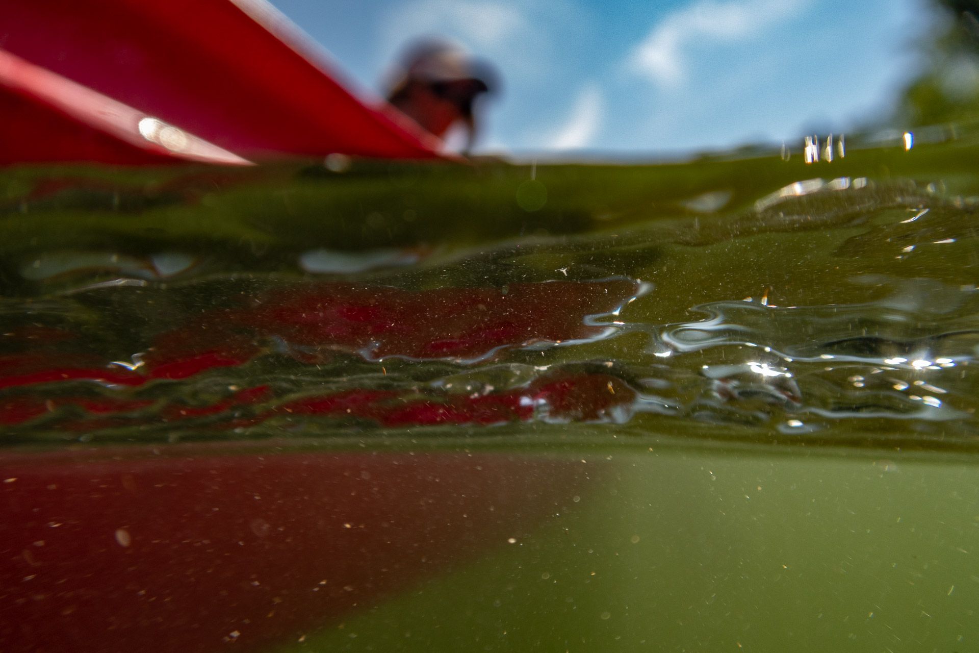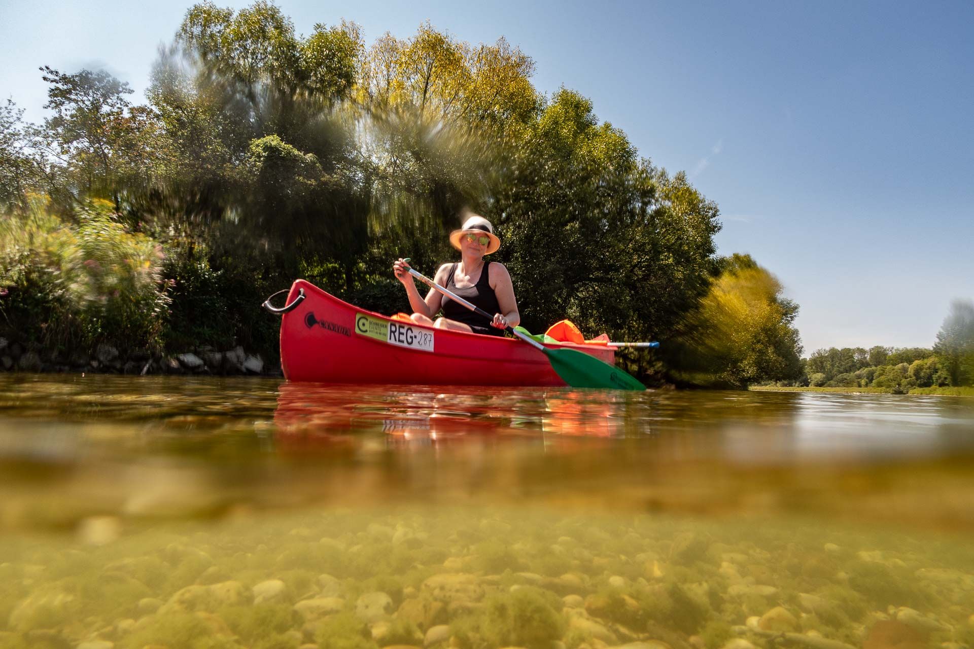 Der Empfehlung die Isar mittig zu befahren sind wir gerne nachgekommen. Der Fluß hat eine außergewöhnliche Ruhe. Keine fünf Minuten nach ablegen tauchst Du ein in die absolute Ruhe – der Alltag ist sofort Vergangenheit. Du bist gefangen von der Schönheit auf der Isar entlang des Naturparkzentrums Isar-Auen. Treiben lassen ist hier die Devise; die Isar übernimmt eigentlich immer das Tempo. Lediglich kleine Richtungskorrekturen erleichtern dem Fotografen die Arbeit. Der Fluss ist ziemlich klar und so konnte ich dank des wasserdichten Gehäuses auch das eine oder andere Unterwasser-Foto schiessen.
