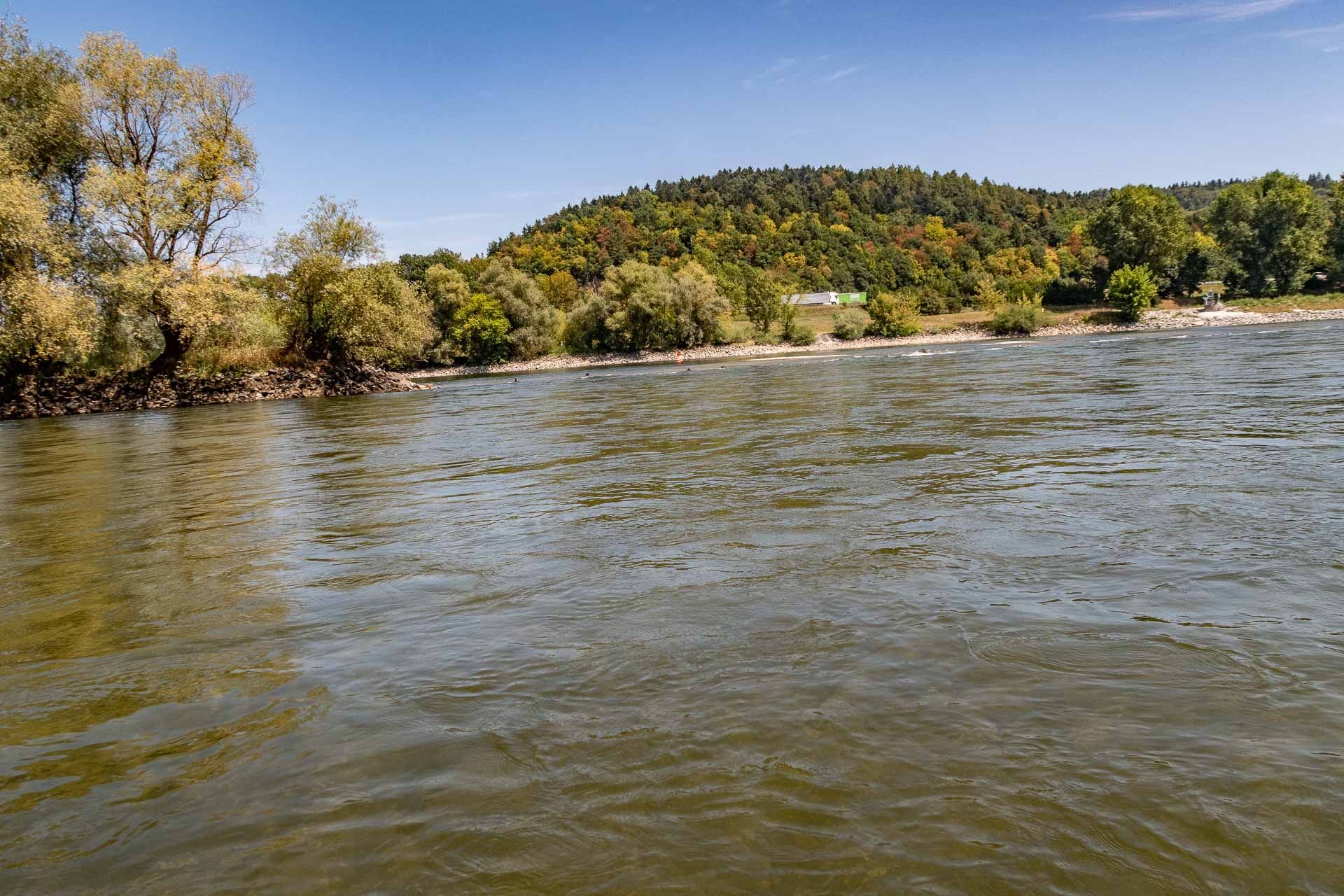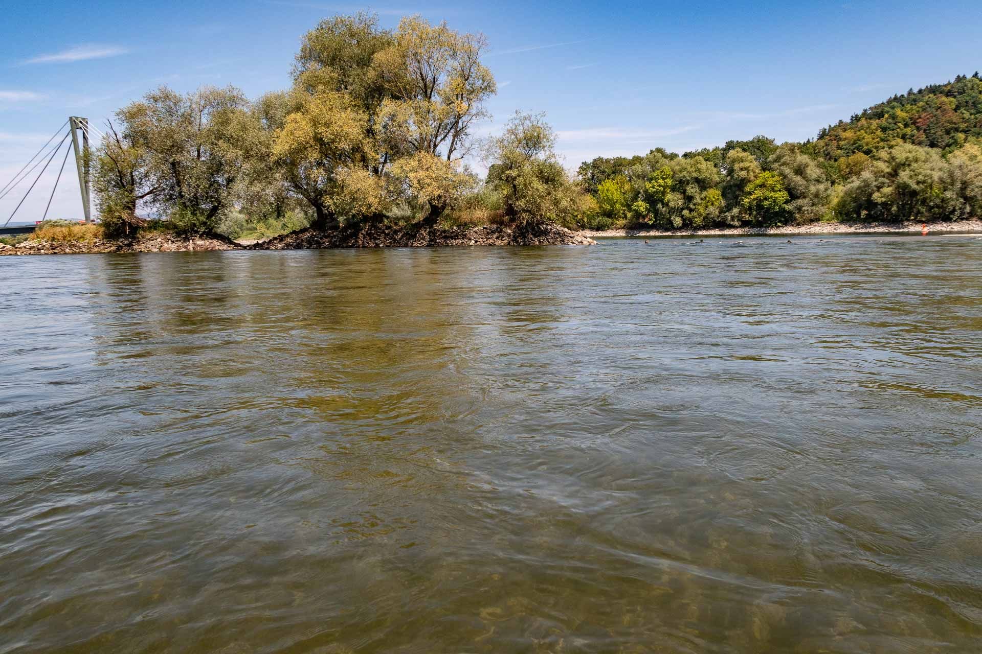 Aber so direkt auf der Isar mittig in die Donau zu wechseln und von dort auch die Mündung zu fotografieren ist schon einmalig! Bald haben sich die beiden verschiedenen Gewässerfarben zu einer vereint. Die Donau – ungleich breiter und wegen der nahen Autobahn auf dem ersten Flusskilometer ziemlich laut – hat das Kanu “aufgesaugt”. Hier gilt es sich weit rechts zu halten. Schließlich ist dieser Strom eine viel befahrene Wasserstraße. Ok, auch hier hatten wir Glück: der Wasserstand betrug gerade mal ca. 160cm. Schiffsverkehr war so gut wie nicht vorhanden. Wir trafen auf den etwas mehr als neun Kilometern lediglich ein Frachtschiff, die Strompolizei sowie ein motorisiertes Schlauchboot.