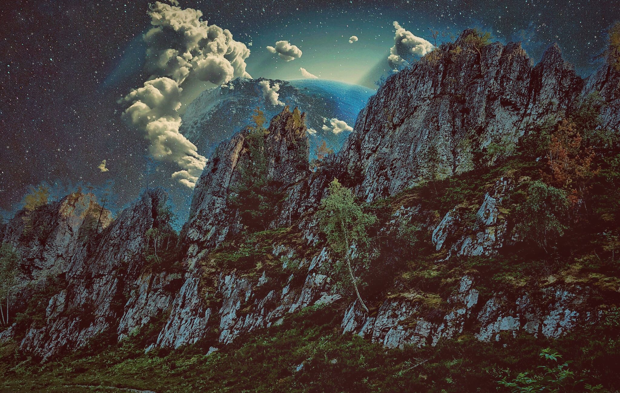 Ich habe Euch hier meine ersten Versuche mit den Galerien „Kosmos“ und „Himmel“ anhand eines Fotos des Großen Pfahls - bei Tageslicht fotografiert - vorbereitet. Das ziemlich dunkle „Kosmos-Foto“ zeigt das originale Ergebnis der App. Beim dritten Bild seht ihr die veränderte Ansicht durch zoomen des Filters. Die übrigen Fotos sind abschließend noch mittels Snapseed bearbeitet worden.