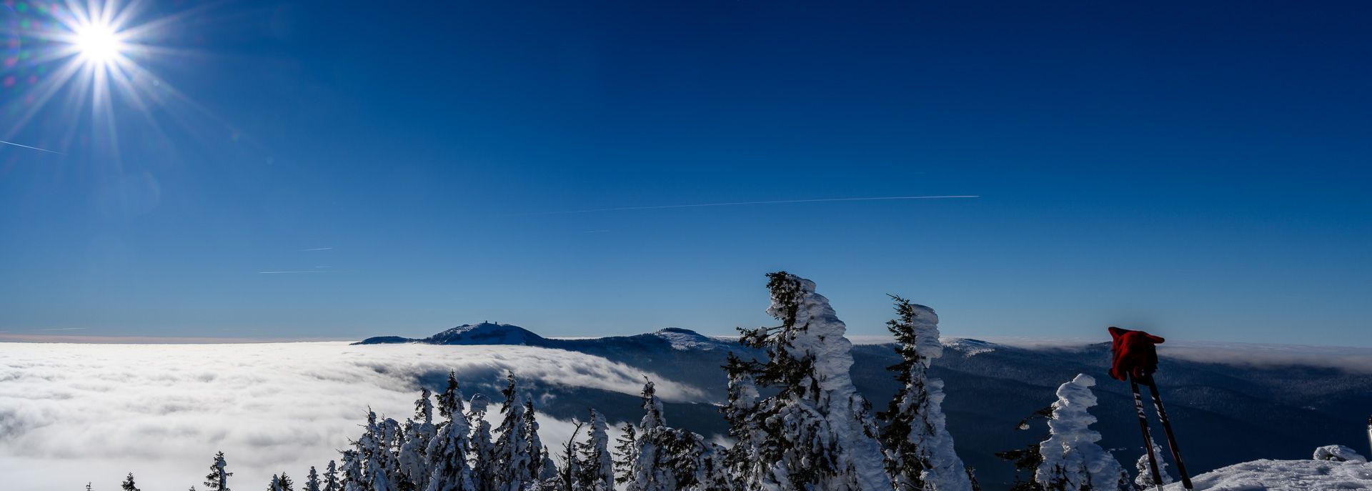 Jürgen, der erfahrene Schneeschuh-Guide vom Team Schneider-Events führte uns vom Ausgangspunkt durch den Wald hinauf. Unser Erstes Ziel waren ein paar Schneemanderl unterhalb des Einödriegel. Dann trafen sich Laub- und Nadelwald kurz unter dem Gipfelkreuz. Zwischendurch haben wir immer wieder neue Motive entdeckt.