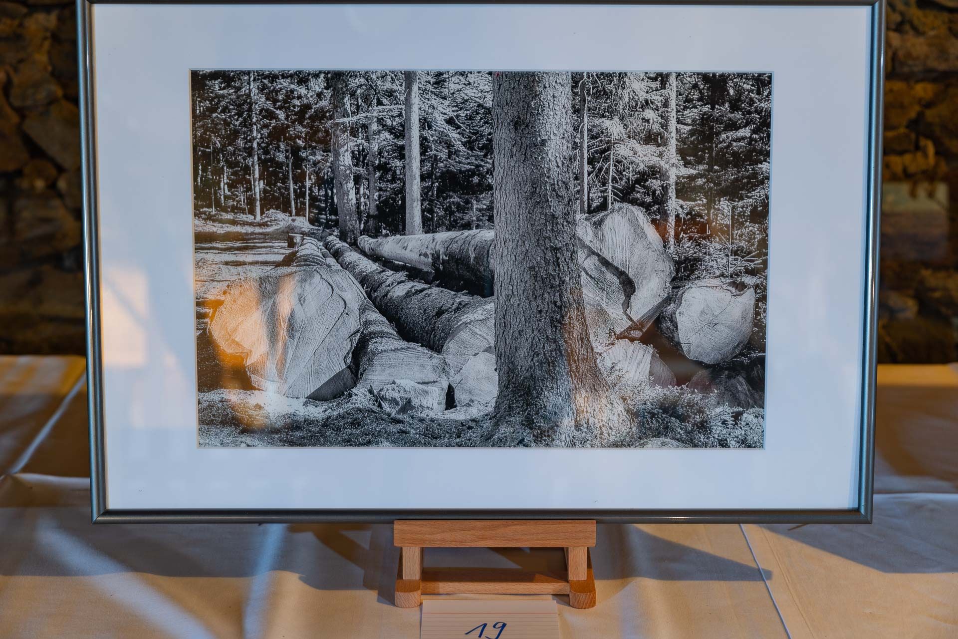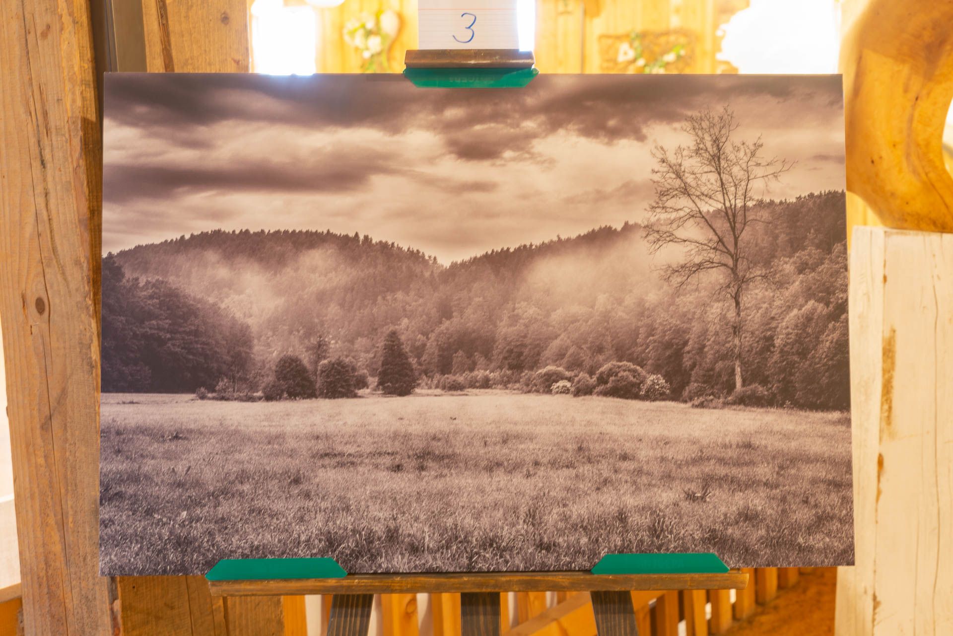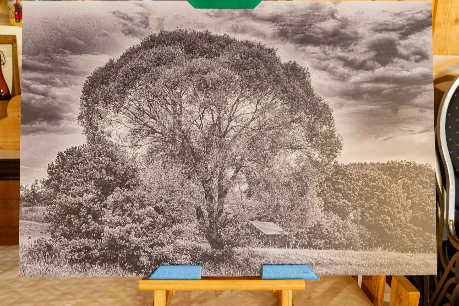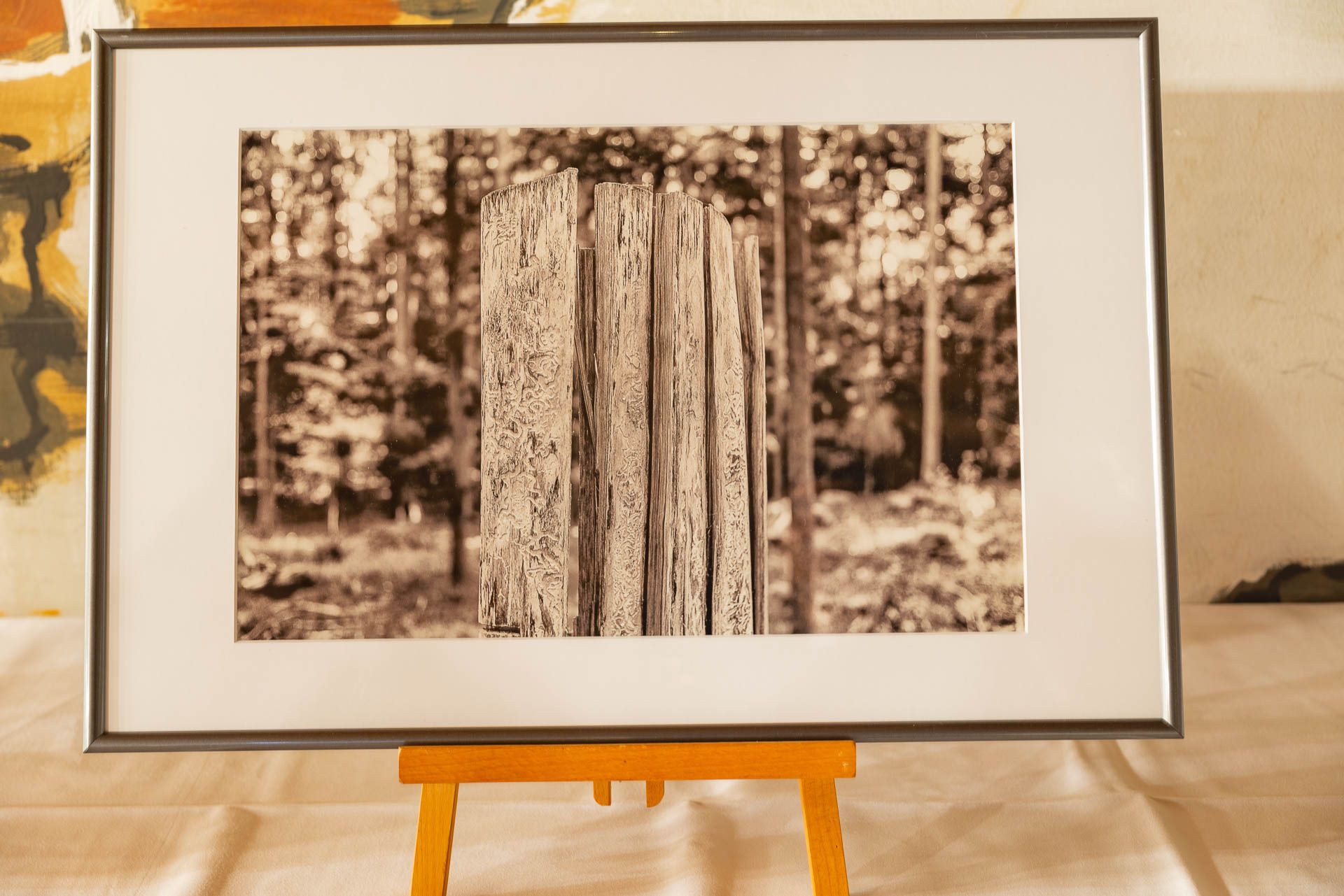 Zur Kunstausstellung präsentiere ich schwarz-weiß Fotografien zum Thema Holz, Baum sowie Baumlandschaften im Bayerischen Wald. Fünf dieser Fotografien präsentiere ich auf Alu im Format 75 x 50 cm. Die übrigen fünfzehn Fotografien werden im Format 45x30 cm mit Passepartout gerahmt präsentiert. Als Besonderheit stehen sämtliche Fotografien auf Feld- bzw. Tischstaffeleien.