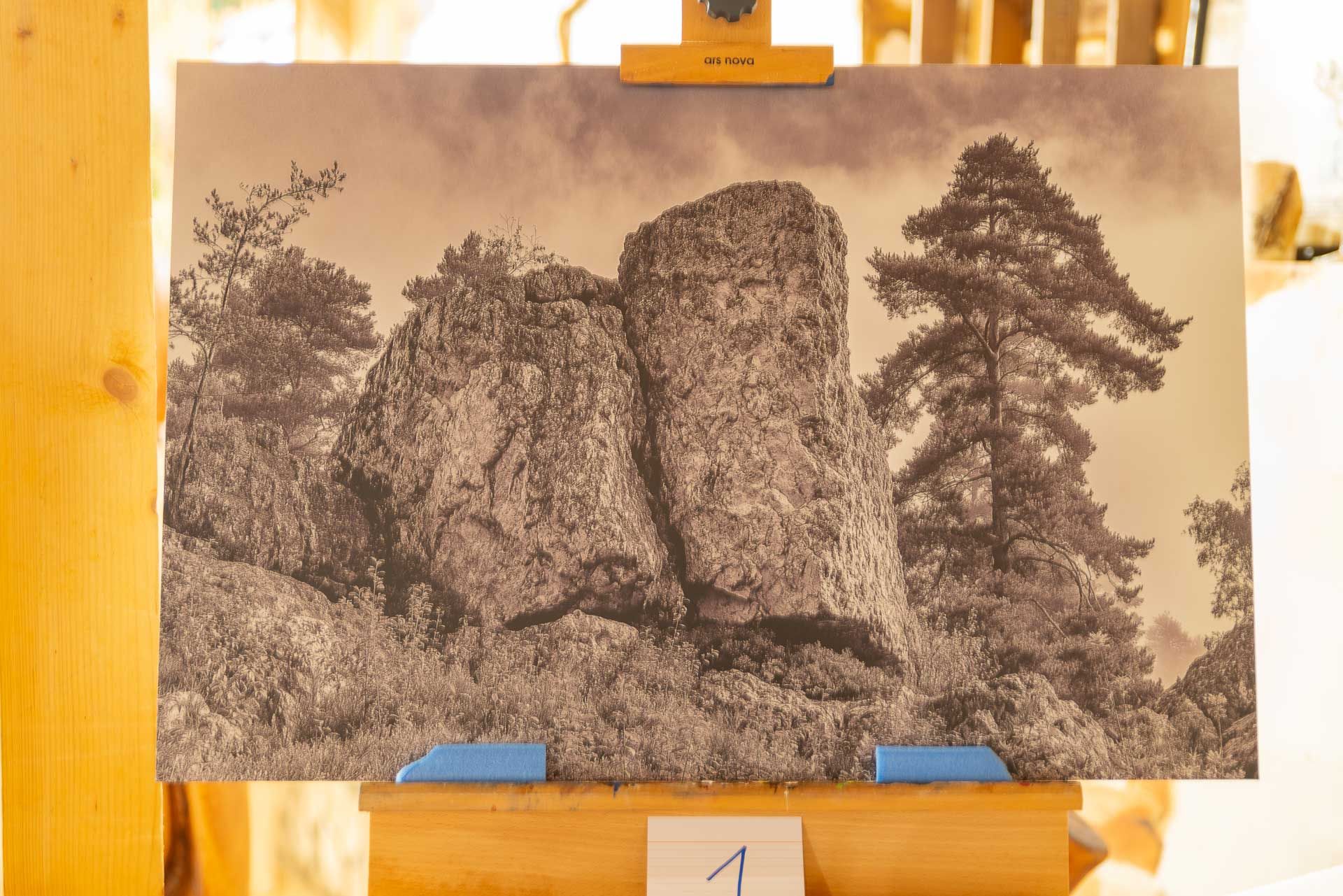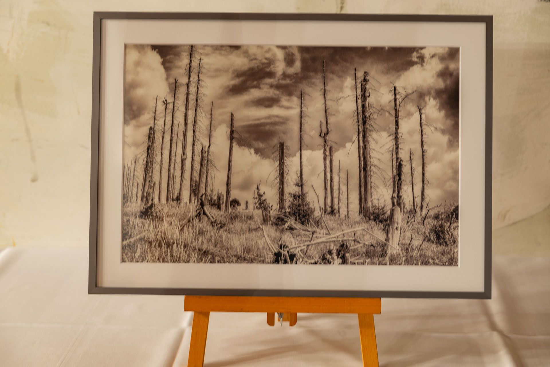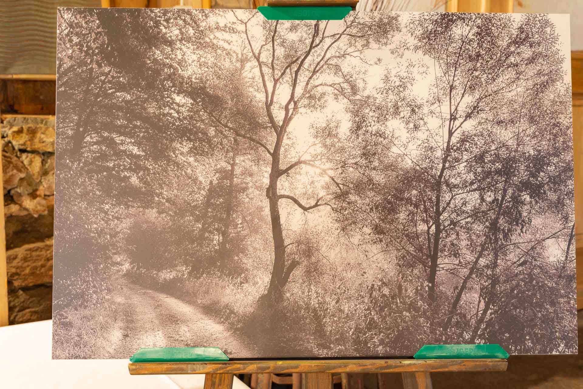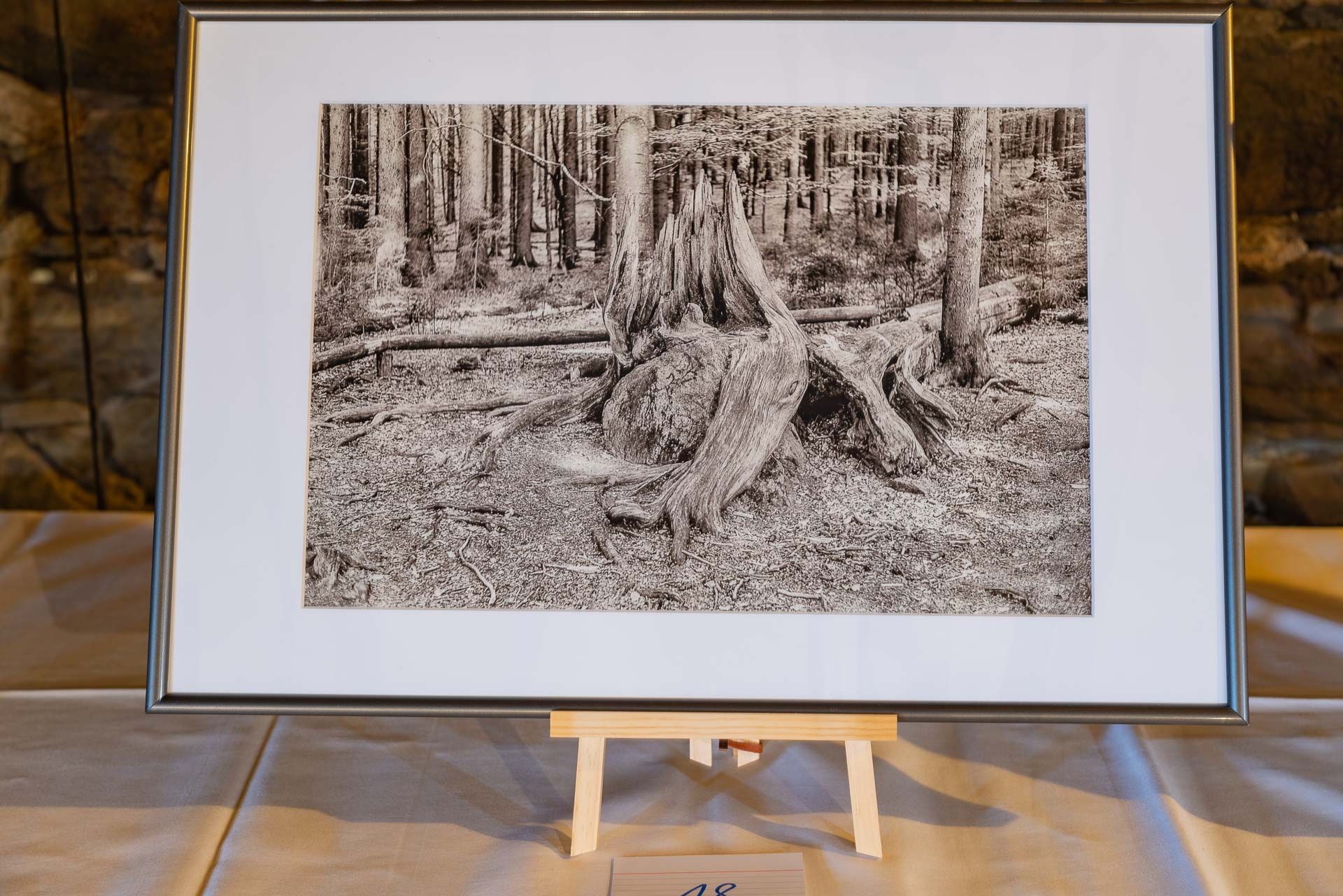 Zur Kunstausstellung präsentiere ich schwarz-weiß Fotografien zum Thema Holz, Baum sowie Baumlandschaften im Bayerischen Wald. Fünf dieser Fotografien präsentiere ich auf Alu im Format 75 x 50 cm. Die übrigen fünfzehn Fotografien werden im Format 45x30 cm mit Passepartout gerahmt präsentiert. Als Besonderheit stehen sämtliche Fotografien auf Feld- bzw. Tischstaffeleien.