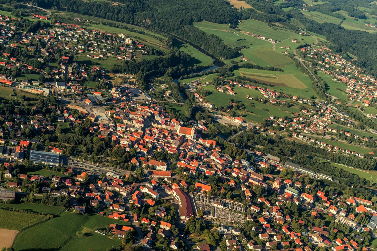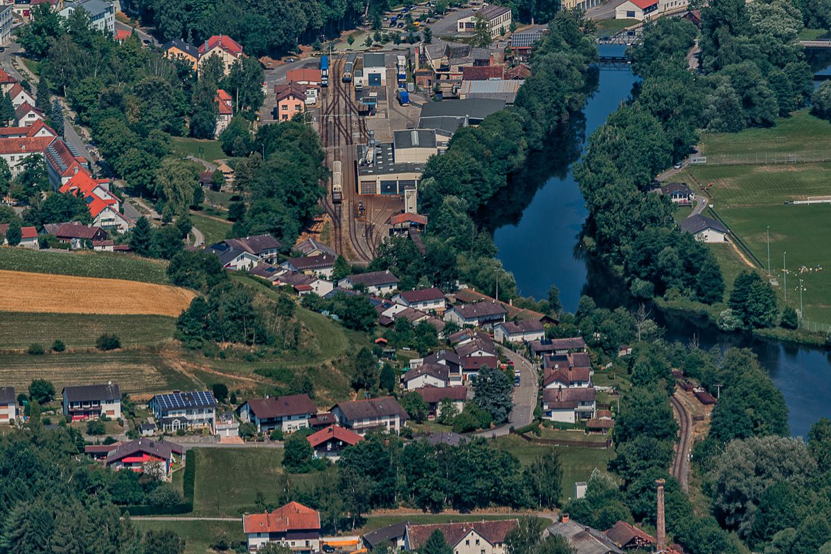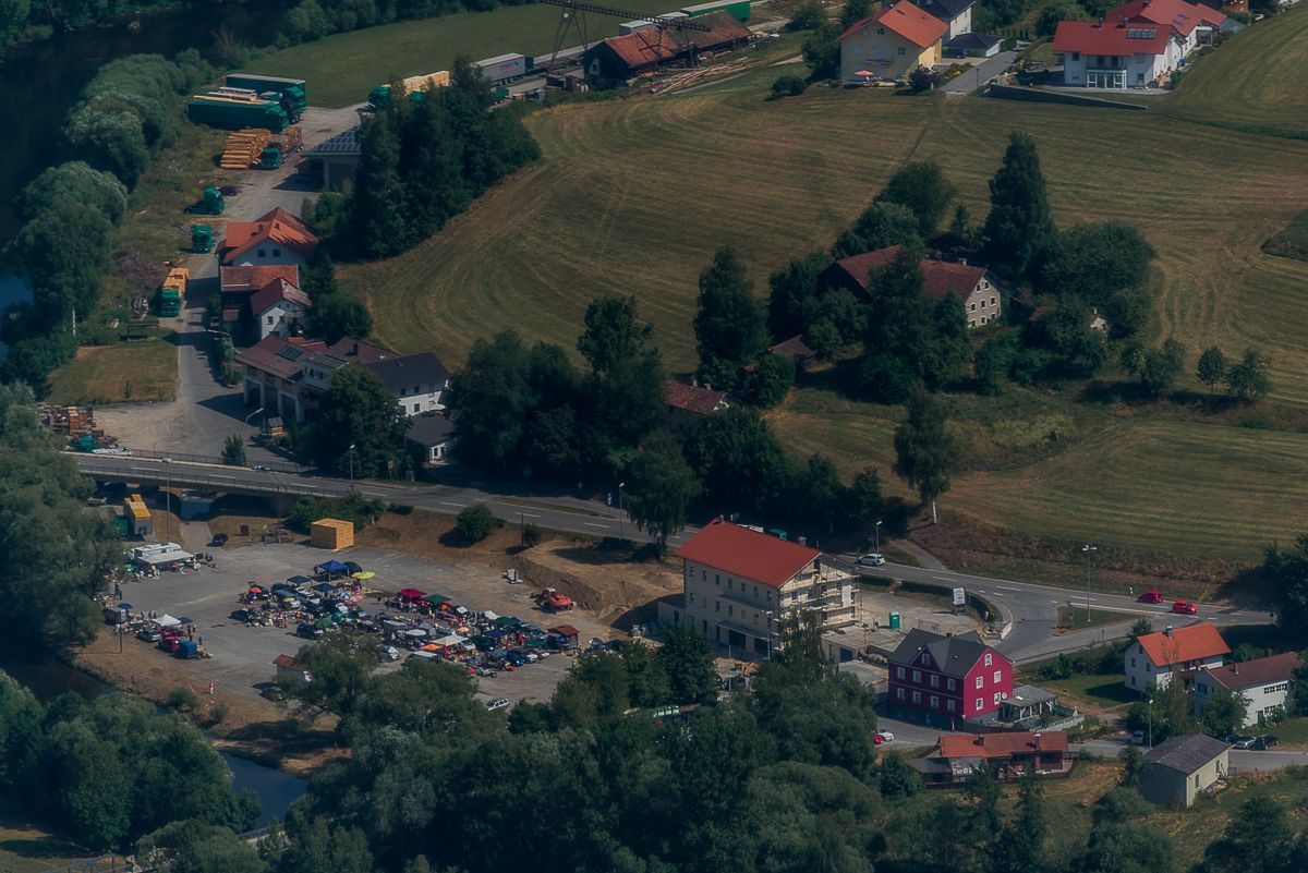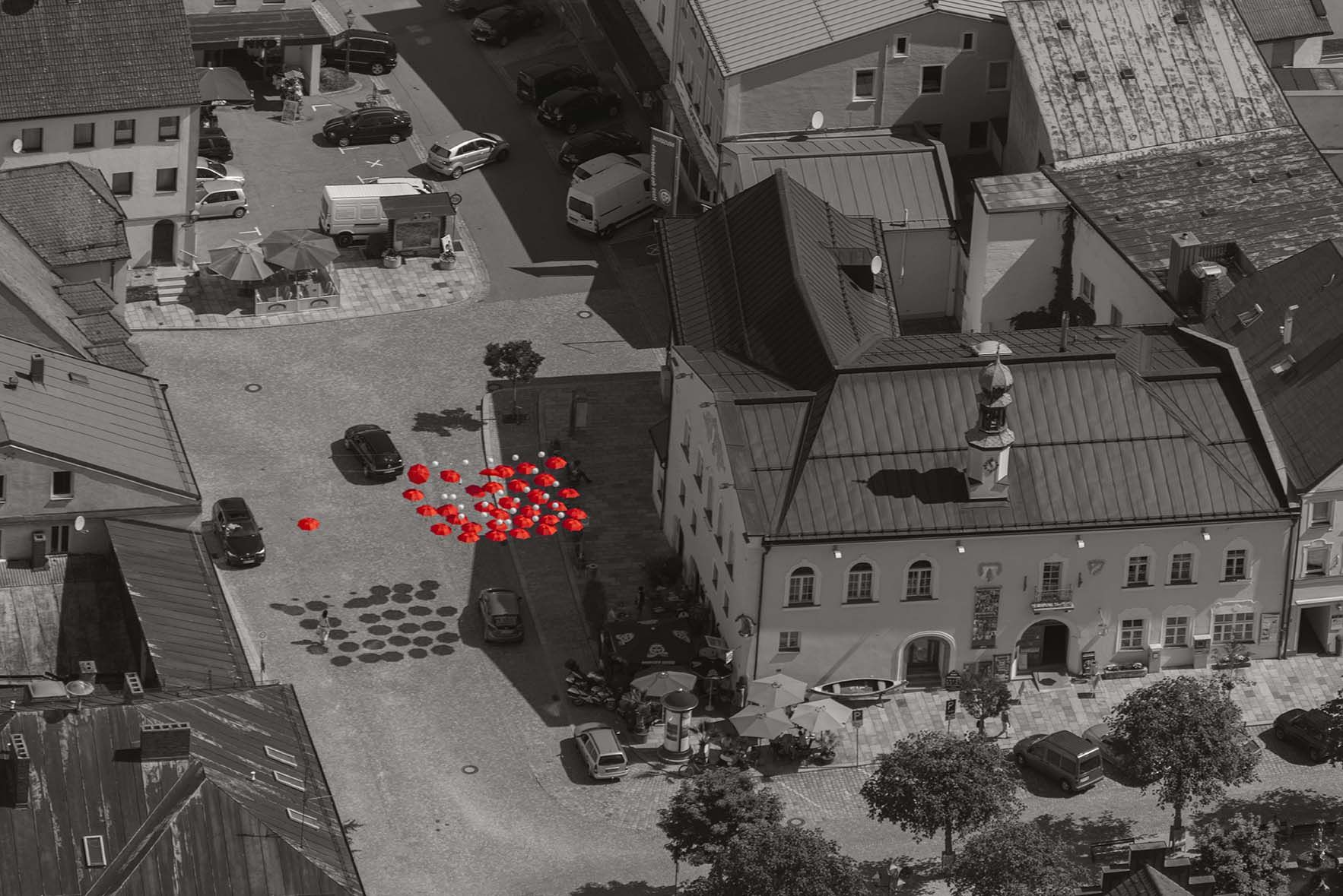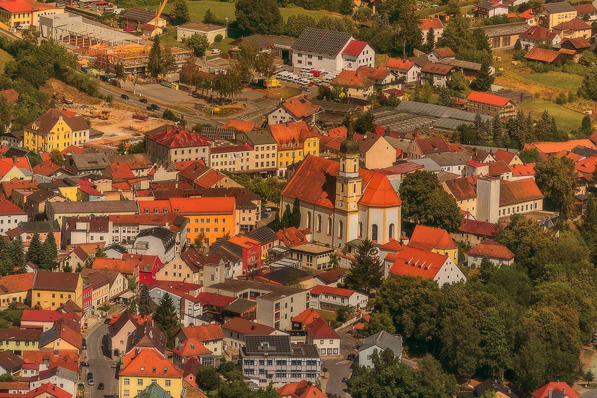Damals wurde ich seitens der Stadt Viechtach gefragt, ob ich Bildmaterial für die Ausstellung liefern könne. Nun – nachdem bisher sehr wenig Luftbilder über Viechtach existierten – entschied ich mich, vom gesamten Stadtbereich aus Luftbilder anzufertigen und digital zu präsentieren. Es wurden exakt 60 Luftbilder via Flatscreen präsentiert; ein paar wenige waren als Ausdrucke ebenfalls ausgestellt.