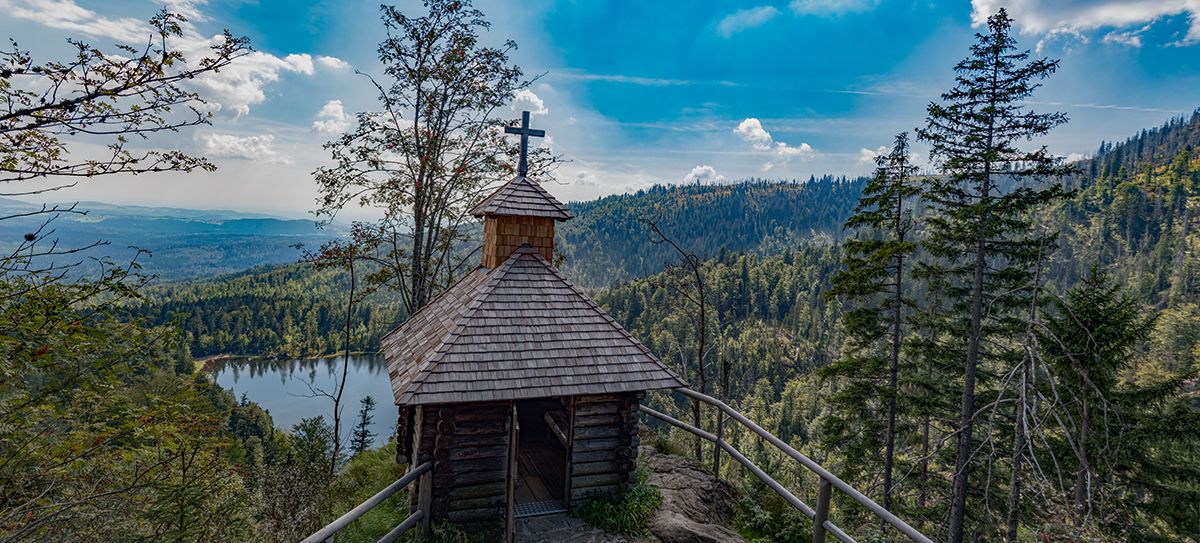 Ein typisches Landschaftsbild im Bayerischen Wald mit Gipfelkreuz oder “Marterl” ist immer zur Ruhe animierend. Kurz innehalten und die Landschaft geniessen! Vor allen Dingen auf den Gipfeln im Bayerischen Wald findest Du immer ein Gipfelkreuz, an den Wegesrändern oftmals ein bereits erwähntes Marterl oder Totenbrett.