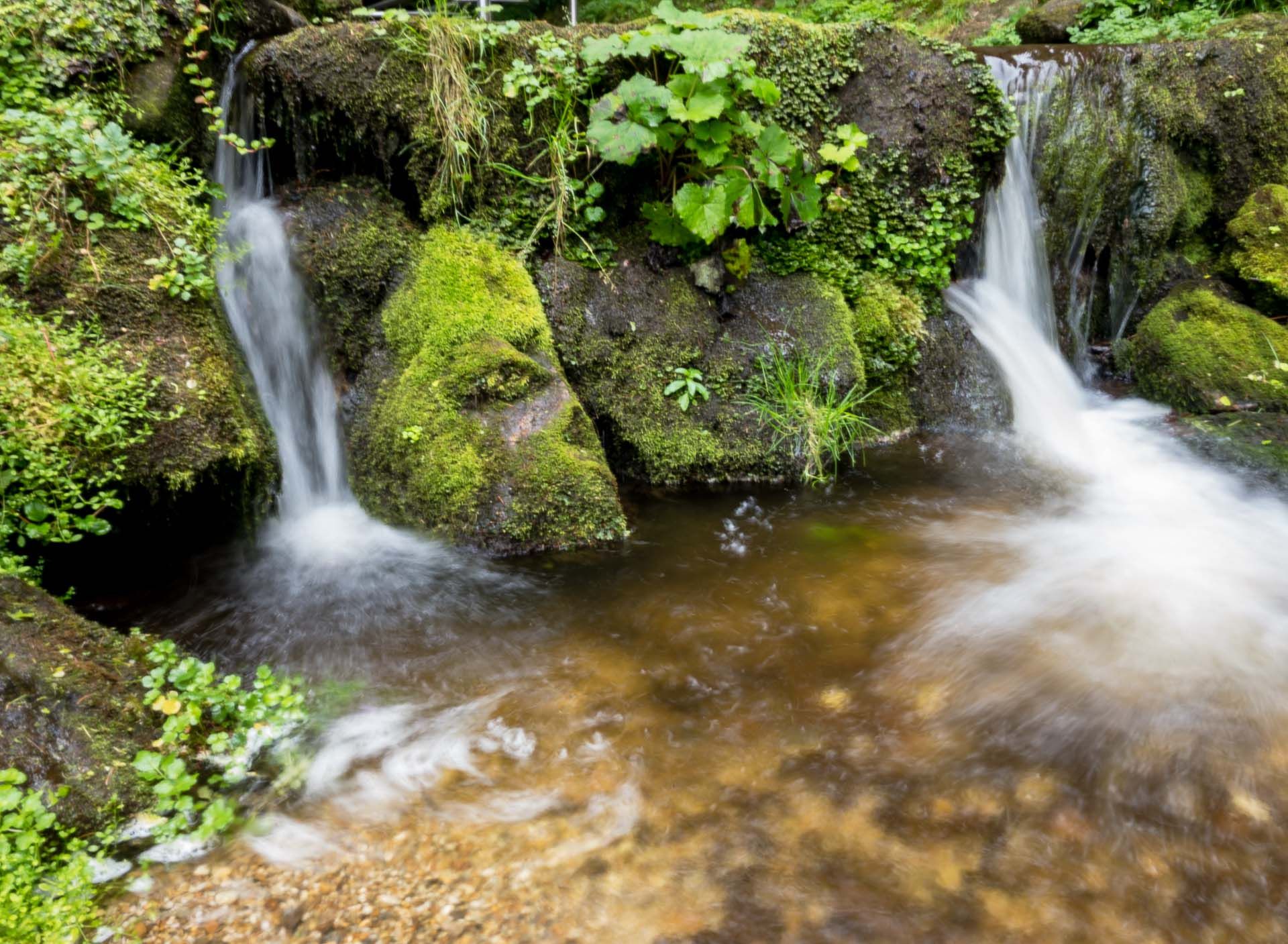 Im Bild oben links ( auf dem Smartphone dann das obere Foto) wurde der kleine Wasserfall beim Pfeifenbrunner Kneippbecken mit der systemeigenen Handy-App fotografiert. Das Bild rechts ( auf dem Smartphone folglich das zweite Foto) habe ich mit “Lightroom” fotografiert.