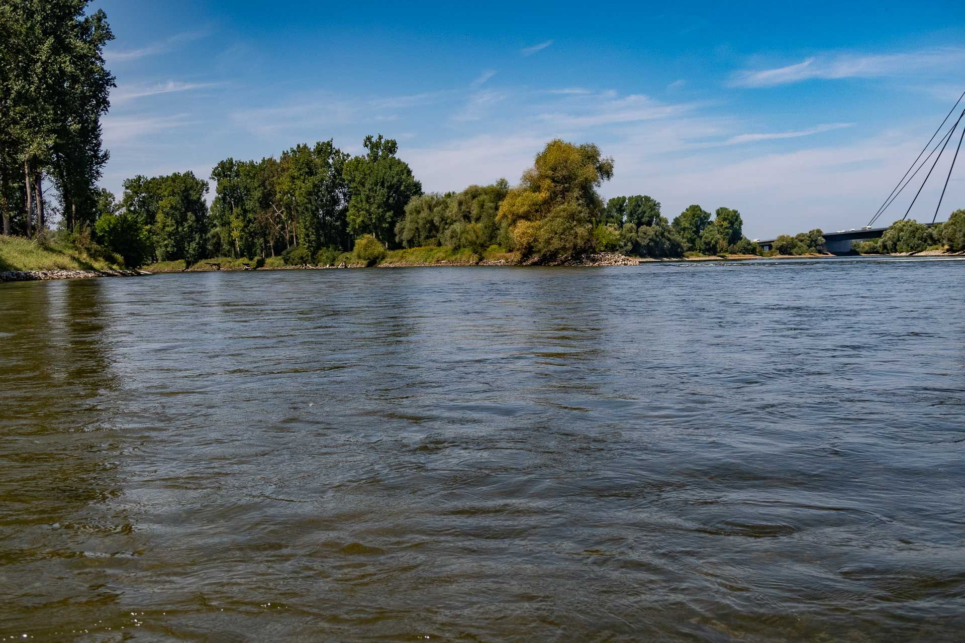Aber so direkt auf der Isar mittig in die Donau zu wechseln und von dort auch die Mündung zu fotografieren ist schon einmalig! Bald haben sich die beiden verschiedenen Gewässerfarben zu einer vereint. Die Donau – ungleich breiter und wegen der nahen Autobahn auf dem ersten Flusskilometer ziemlich laut – hat das Kanu “aufgesaugt”. Hier gilt es sich weit rechts zu halten. Schließlich ist dieser Strom eine viel befahrene Wasserstraße. Ok, auch hier hatten wir Glück: der Wasserstand betrug gerade mal ca. 160cm. Schiffsverkehr war so gut wie nicht vorhanden. Wir trafen auf den etwas mehr als neun Kilometern lediglich ein Frachtschiff, die Strompolizei sowie ein motorisiertes Schlauchboot.