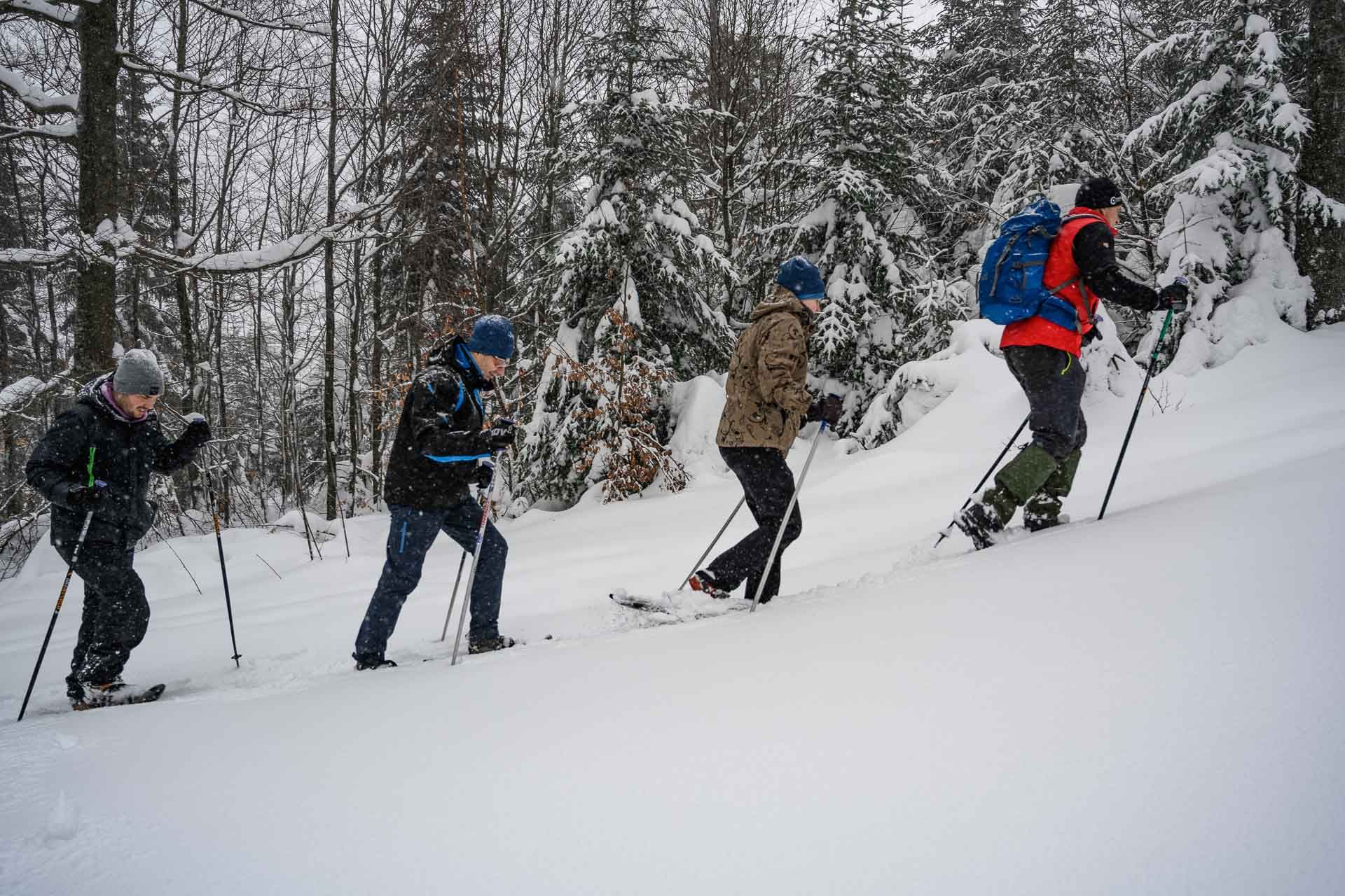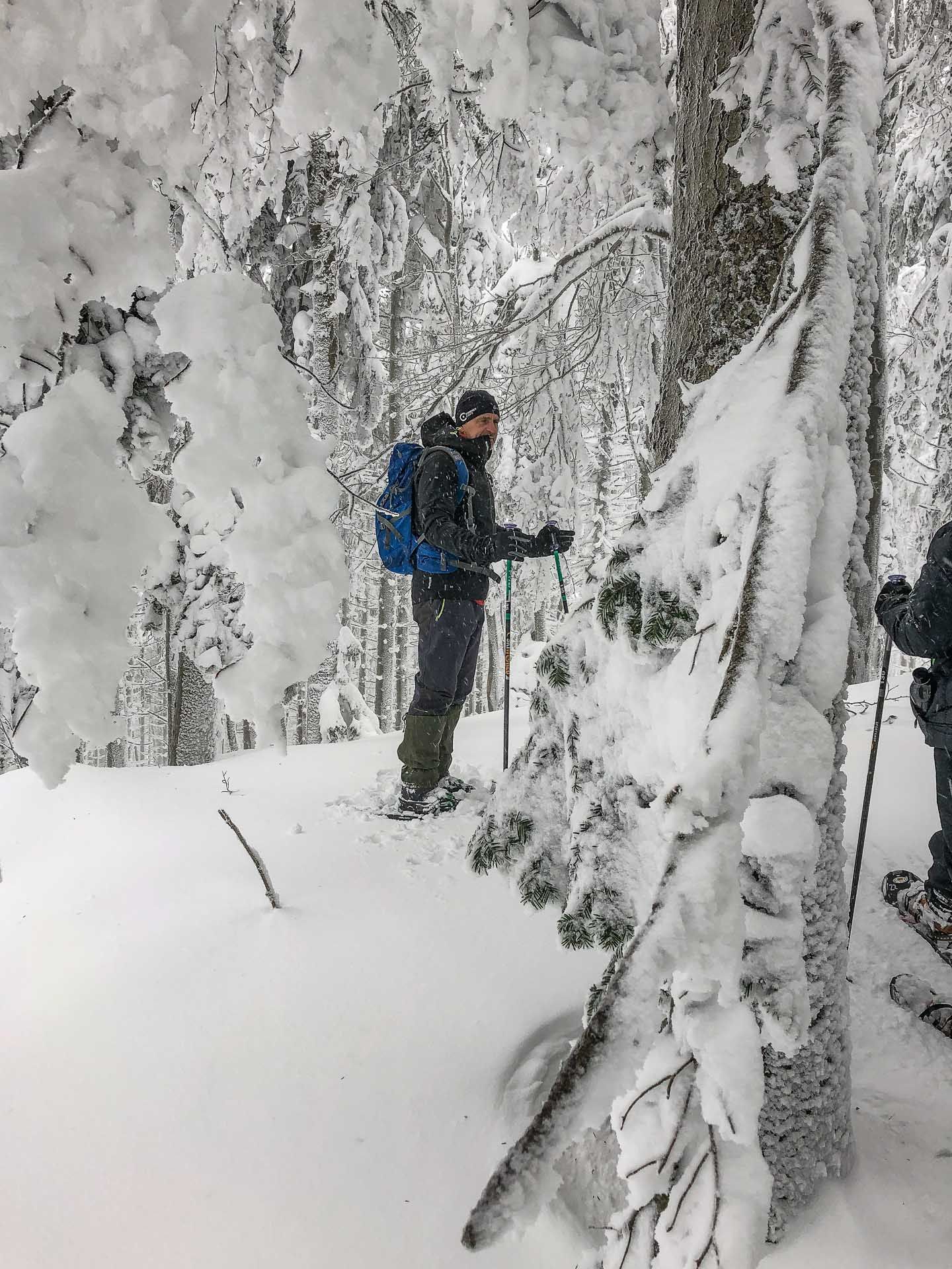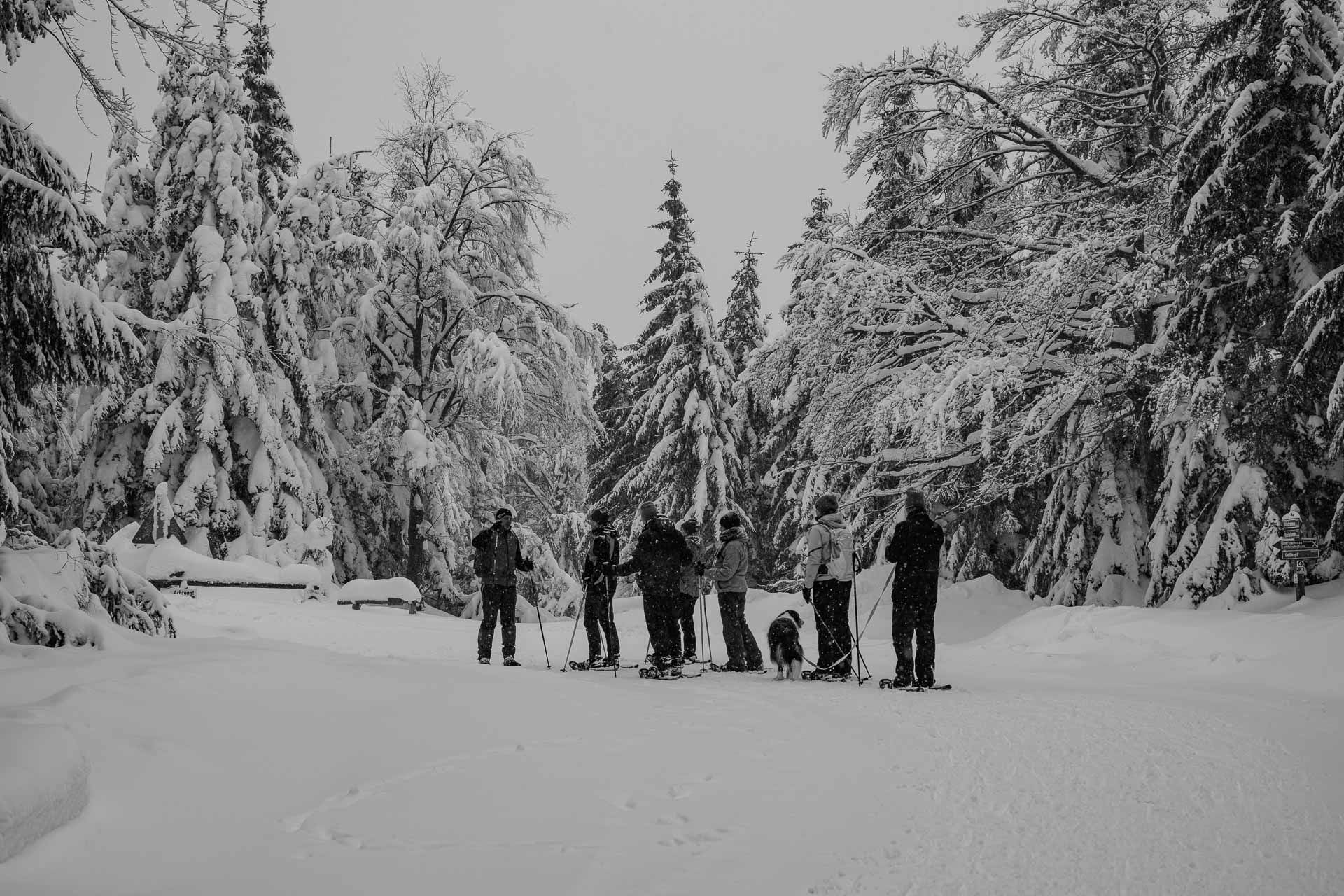 Starker Schneefall und Wind hat die heutige Schneeschuh-Tour mit Schneider-Events begleitet. Das Wetter konnte uns jedoch nicht aufhalten. Mit Schneeschuh-Guide Sepp zogen wir los in Richtung Geißkopf Gipfel. Vor unserem Start habe ich von allen Teilnehmern die Genehmigung erhalten, die Fotos veröffentlichen zu dürfen - vielen Dank.
