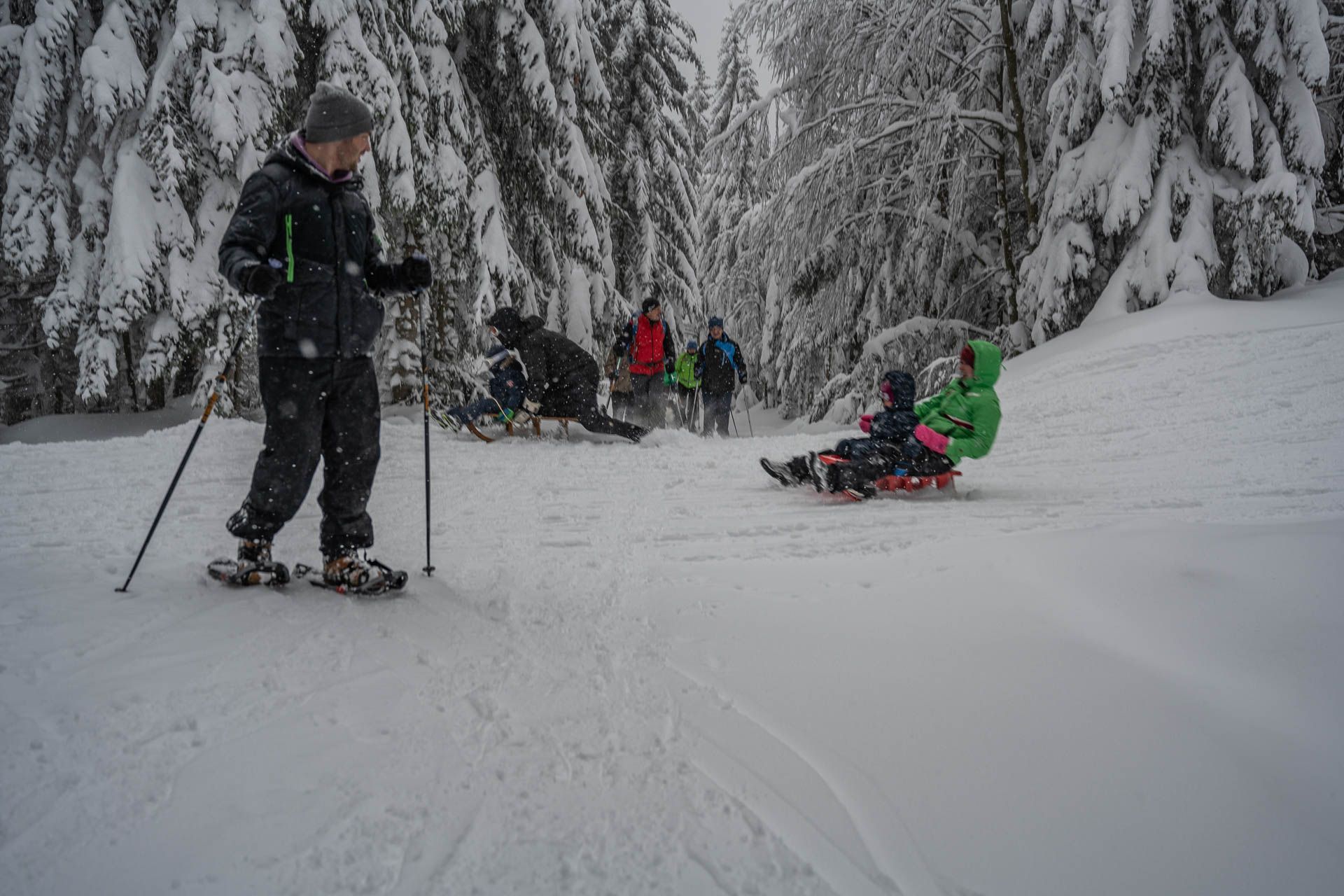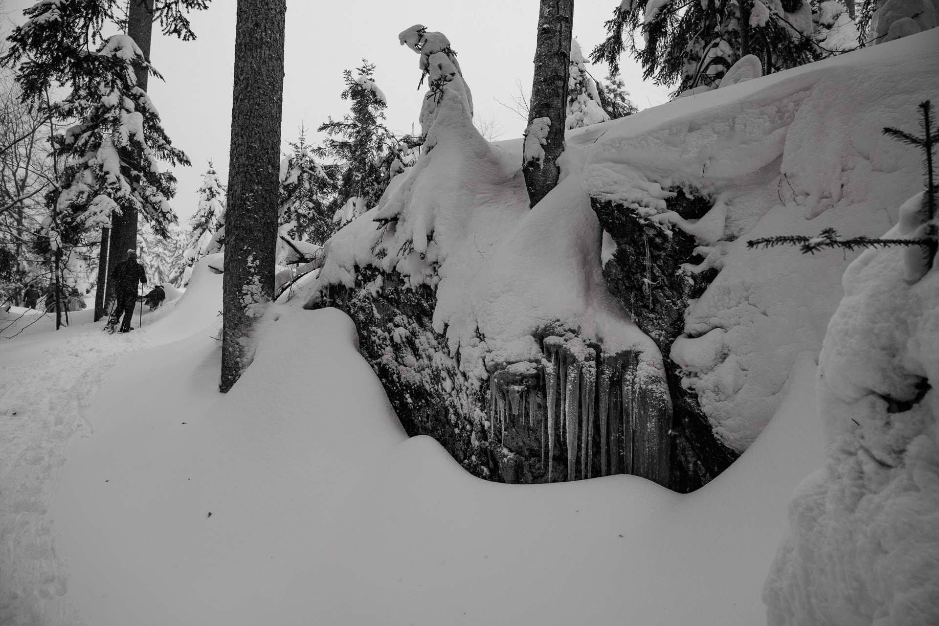 Wir haben auf der gesamten Strecke knappe 400 Höhenmeter überwunden. Die frische Pulverschneeauflage entschädigte für das schlechte Foto-Wetter.