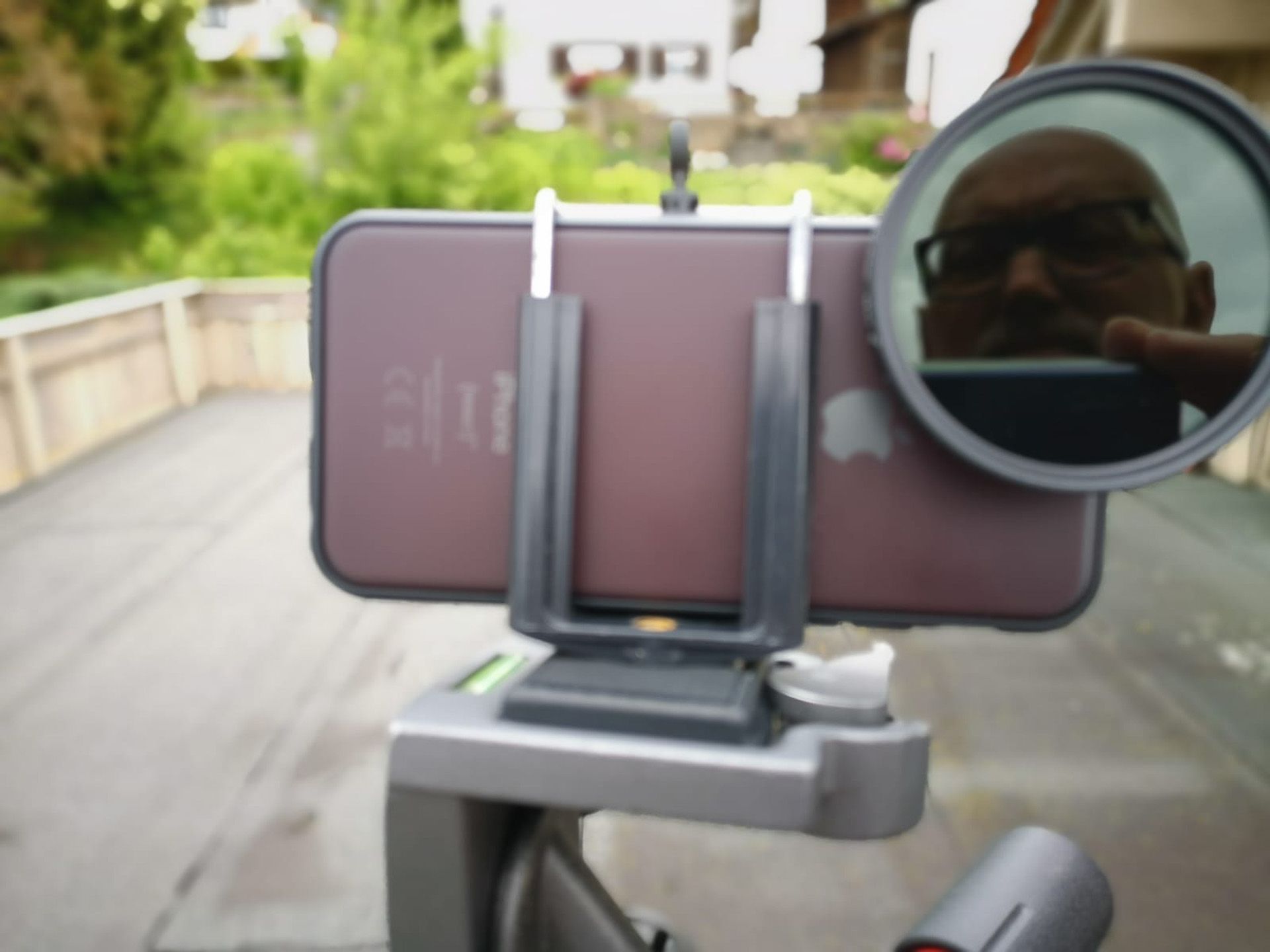 In der Zwischenzeit habe ich mal getestet, ob der variable ND-Filter auch für die „normale Smartphone-Fotografie mit dem Iphone 8 einsetzbar ist. Deshalb habe ich mir das Wolkenspiel am 24.05.2020 als Motiv ausgesucht. Das Smartphone habe ich hierzu auf das Stativ montiert. Dies ist zumindest bei Langzeitbelichtungen besonders wichtig.
